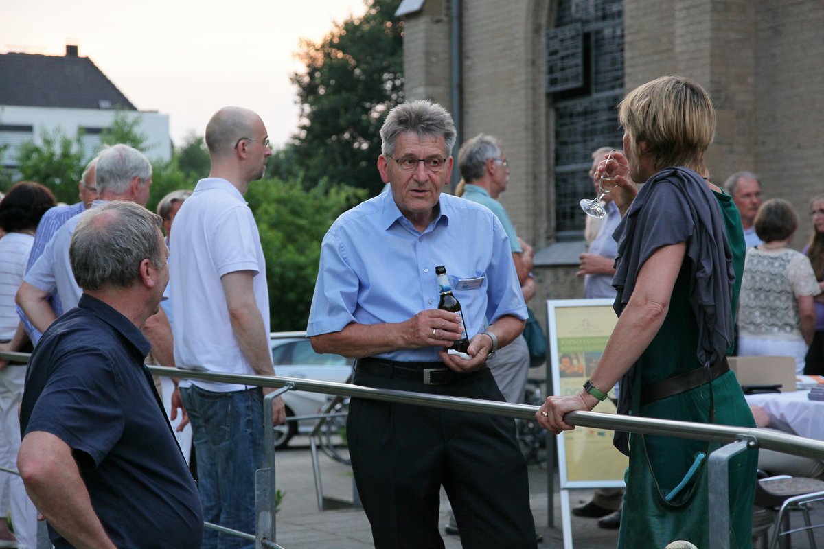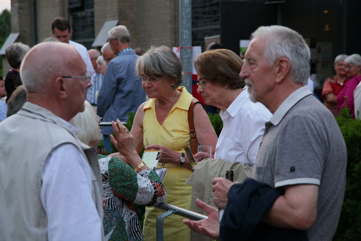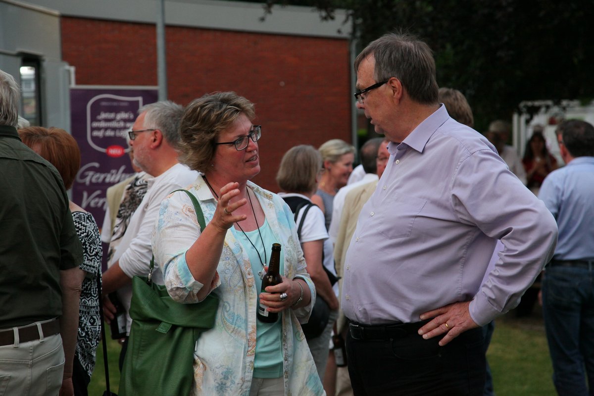Peter Körber, bekannter Dorstener Fotograf und dem Kulturkreis herzlich gewogen, machte die folgenden Bilder,  die eindrucksvoll zeigen, wie gut die Idee war, vor dem Konzert einen Imbiss inkl. Platzreservierung anzubieten: Die Gelegenheit zum SmallTalk wurde gerne angenommen, die erfrischenden Getränke waren an diesem warmen Sommerabend herzlich willkommen.