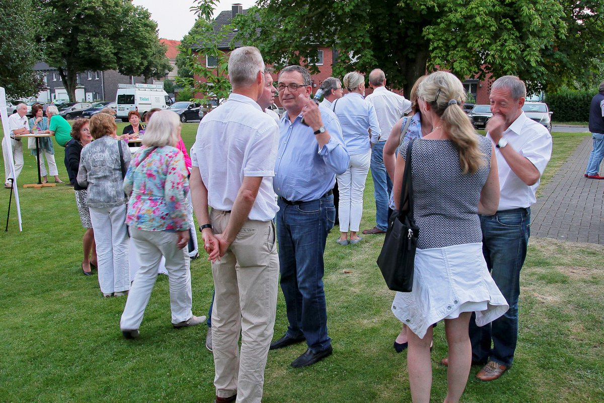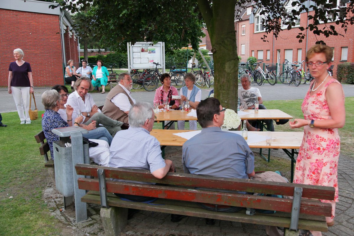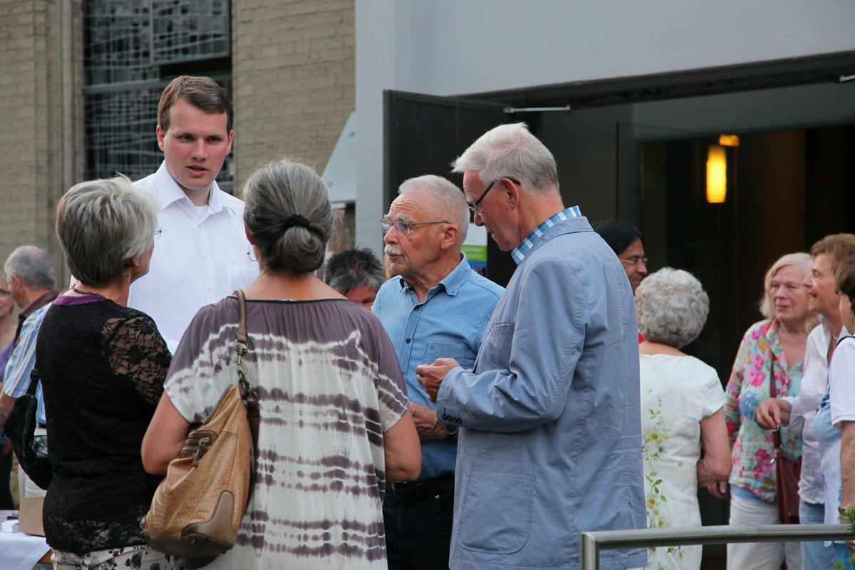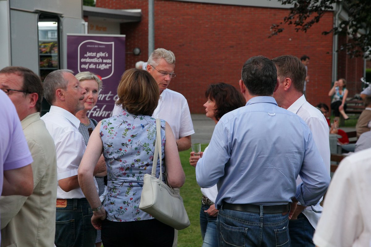 Peter Körber, bekannter Dorstener Fotograf und dem Kulturkreis herzlich gewogen, machte die folgenden Bilder,  die eindrucksvoll zeigen, wie gut die Idee war, vor dem Konzert einen Imbiss inkl. Platzreservierung anzubieten: Die Gelegenheit zum SmallTalk wurde gerne angenommen, die erfrischenden Getränke waren an diesem warmen Sommerabend herzlich willkommen.