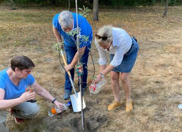 IZM bringt Bewässerungssäcke an die Bäume des GHS-Geländes
